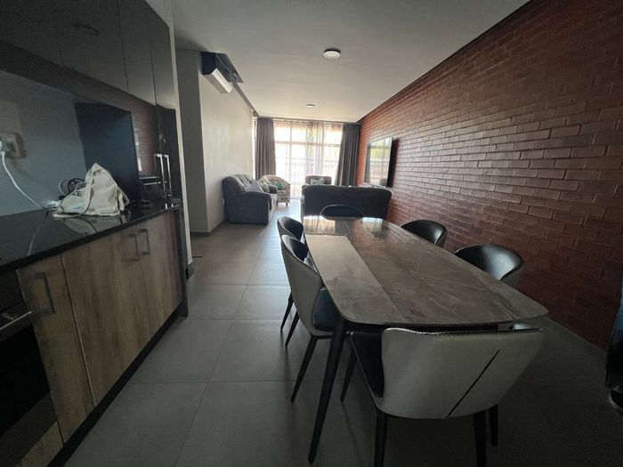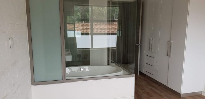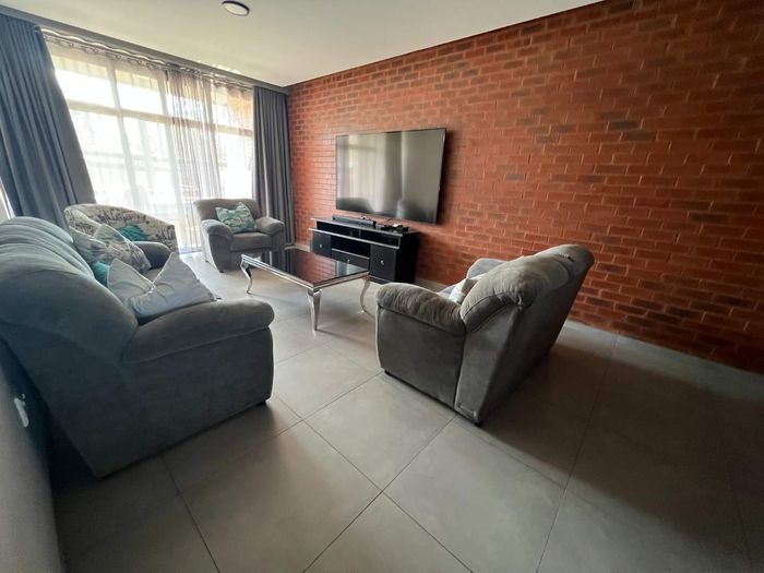 Bush-side luxury retreat for relaxed family living, just 1.5 hours from JHB, featuring an open-plan kitchen, built-in bar, private pool, three bedrooms and two bathrooms.