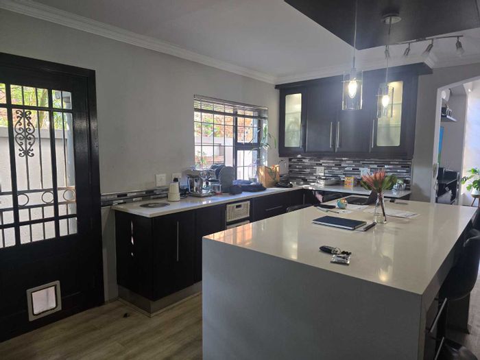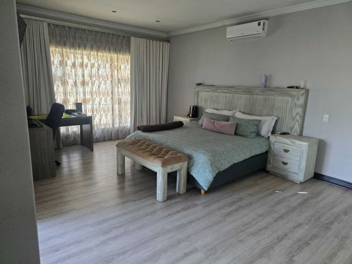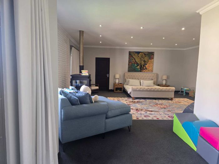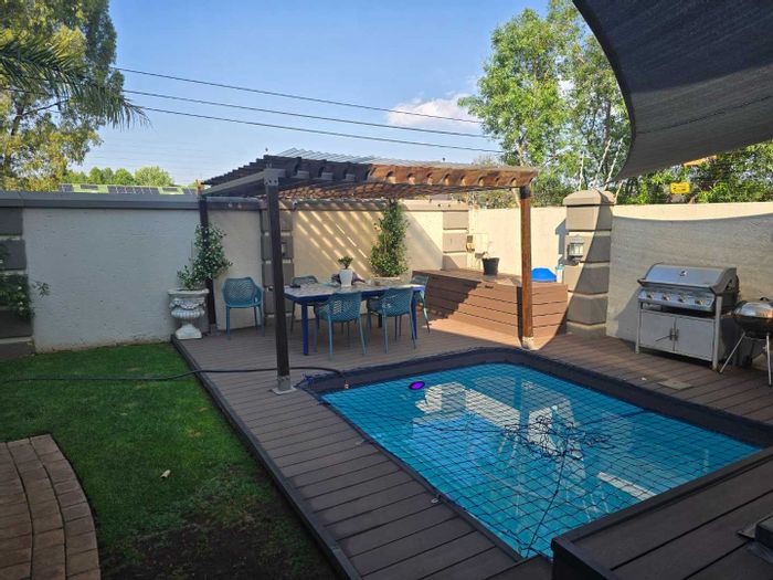 Effortless entertaining and family living in a private setting with lapa, boma, sparkling pool and jacuzzi; main bedroom boasts a dressing room with fireplace. Five bedrooms, four baths, double garage.