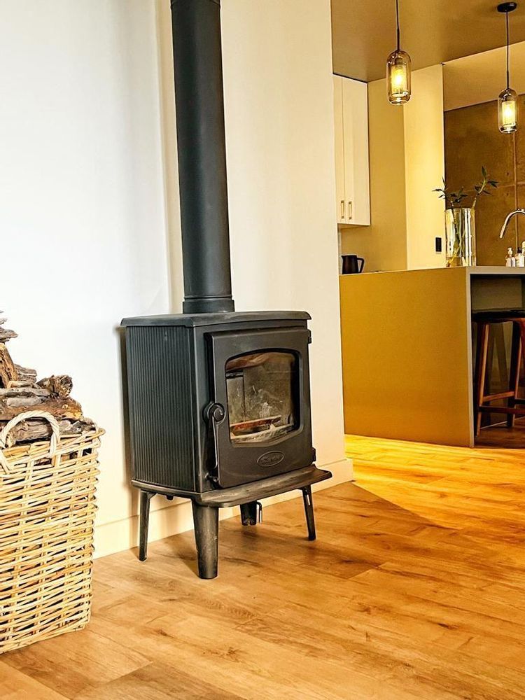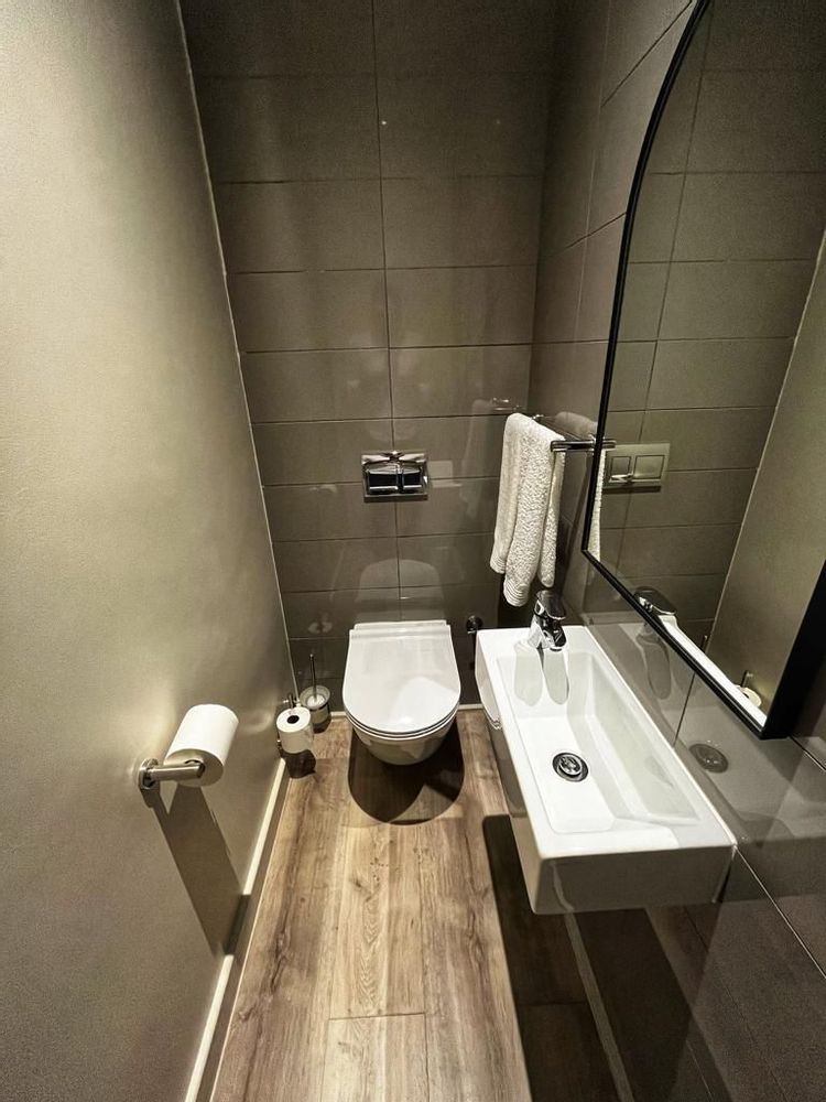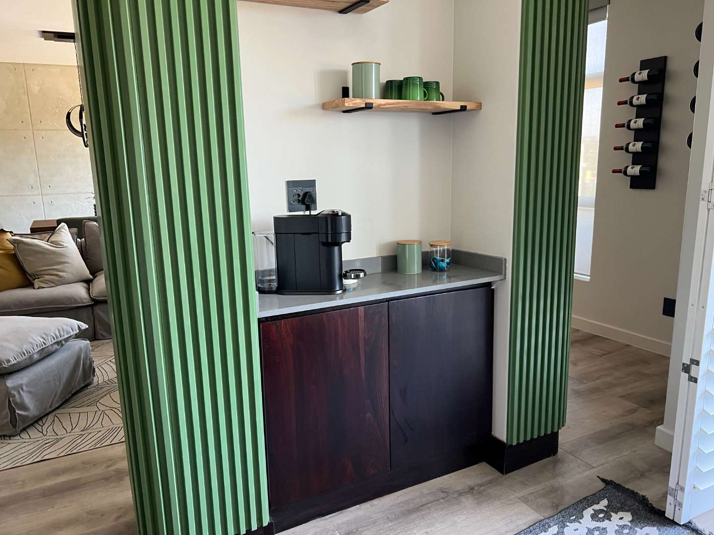 Fully equipped kitchen with ample cupboard space and sleek finishes.