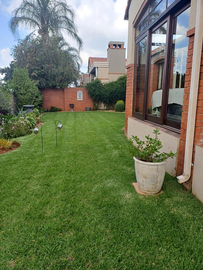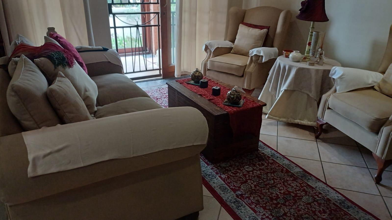Fully furnished three bedroom townhouse with sun porch enclosed and private garden, Double security in sought after estate. Two full bathrooms. Well appointed kitchen, upmarket lounge dining patio kitchen and garden. Additional will be electricity and water. Double garage and single secure open parking available. Estate with tennis courts and communal pool and clubhouse.